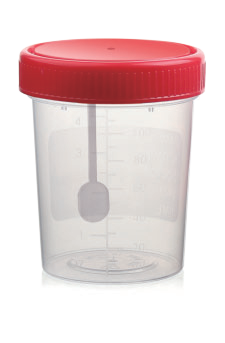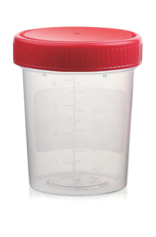 ML4020-4207-13Urine Container, PP material, Vol.60ml, with marking area, molded graduation at each 10ml up to 60ml(0.5 fl.oz. up to 2.0 fl.oz.), with vertical stripes,RED Lid. Cups and lids are bulk-packed in different polybags but in the same carton, non-sterile.1,000cups/polybag+500lids/polybag, 1,000sets/carton
