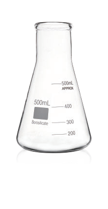 ML4016-0500CONICAL FLASK, BOROSILICATE 3.3 GLASS MATERIAL, LONG NARROW NECK. VOL.500ML6ea./box, 36ea./carton