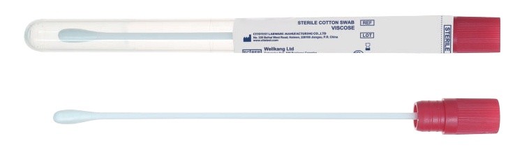 ML2120-0016MICROBIOLOGICAL SPECIMEN COLLECTING AND TRANSPORTING SET, CONSISTS OF 1 RED CAP, 1 SWAB(VISCOSE HEAD+PS STICK) 150MM LONG AND 1 LABELLED Φ13X150MM PP TUBE. GAMMA STERILE100pcs/polybag,1000pcs/carton